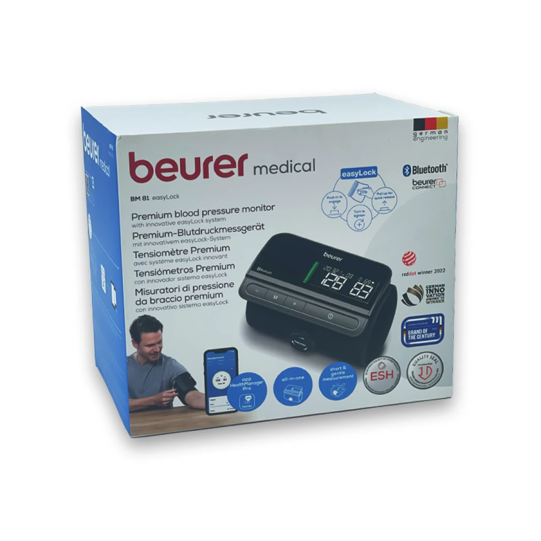 اتصال Bluetooth® Low Energy: امکان انتقال خودکار مقادیر اندازهگیری شده به اپلیکیشن موبایل («beurer HealthManager» یا «HealthManager Pro») برای دنبالکردن روند فشار خون و ضربان قلب در طولانیمدت فراهم است.