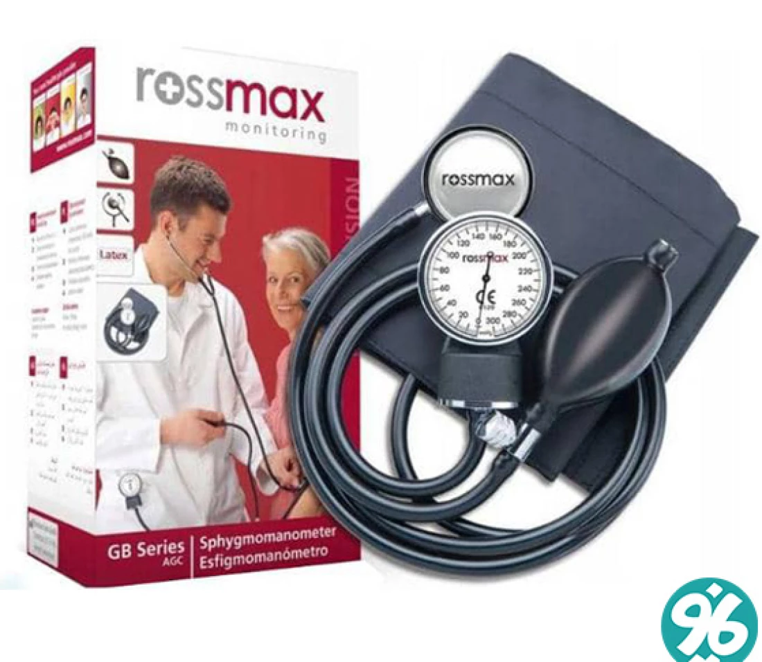 فشارسنج عقربهای بازویی Rossmax GB112 با گوشی پزشکی دو سر، مناسب مطب و منزل. برخورداری از کاف بدون لاتکس، گیج تا ۳۰۰ mmHg با دقت ±۳ mmHg، شیر تخلیه کرومی، و کیف نگهداری — انتخابی حرفهای برای اندازهگیری دقیق فشار خون.